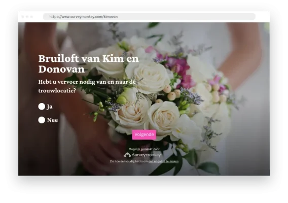 Iedereen heeft zijn eigen ideeën bij het personaliseren van enquêtes. Maar met SurveyMonkey maakt u moeiteloos een mooie, aantrekkelijke enquête die uw merk perfect vertegenwoordigt.