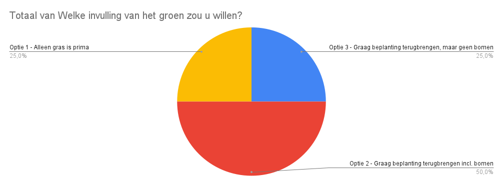 De meerderheid heeft voor een nieuwe speelplek gestemd. In totaal zijn er 17 stemmen voor een nieuwe speelplek en 7 stemmen tegen een nieuwe speelplek. Dit betekent dat wij de huidige speelplek gaan vervangen voor een nieuwe speelplek. Eerder hebben de bewoners ook kunnen stemmen op hun favoriete ontwerp.